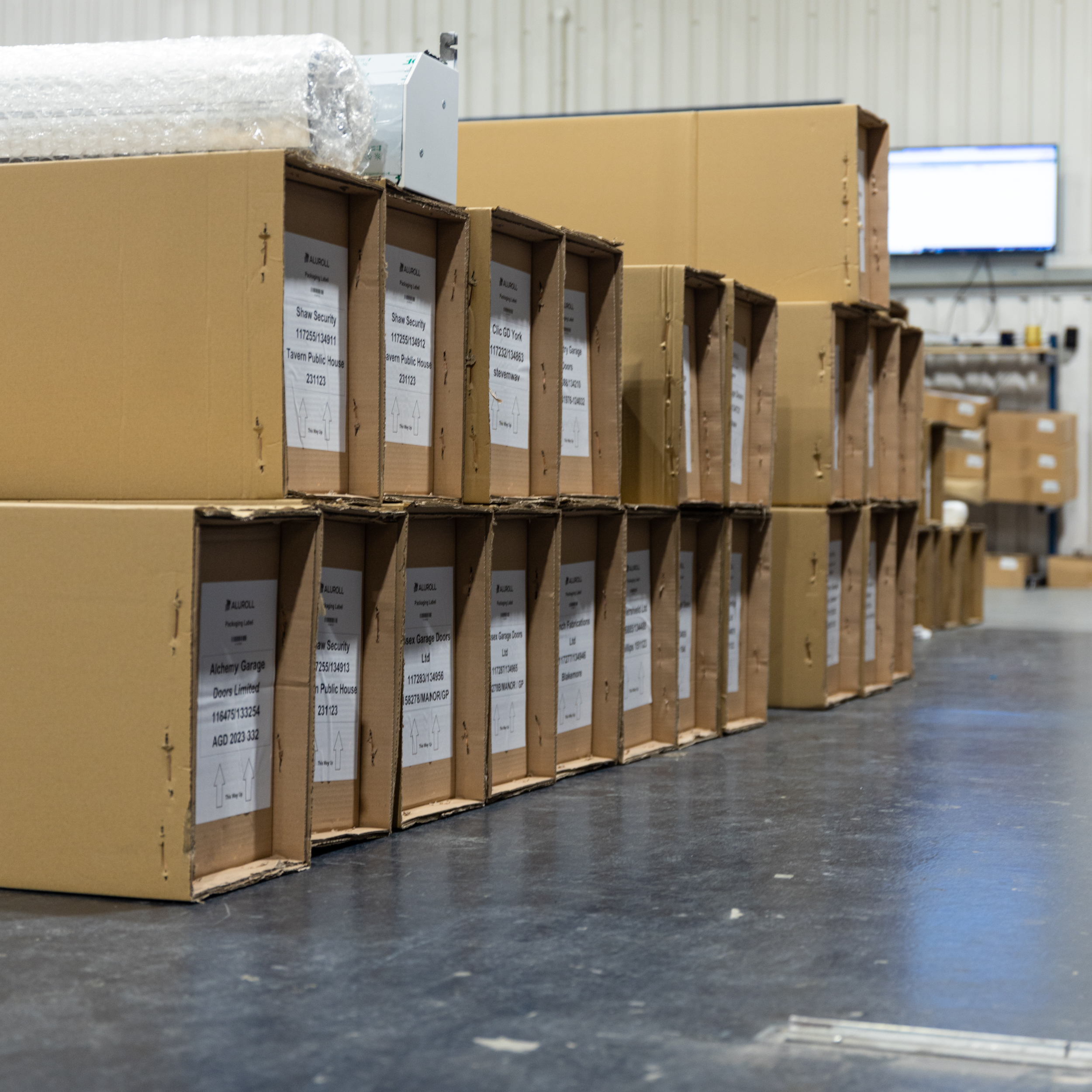 Aluroll maintain significant stock levels of roller shutter profiles, supplemented by regular deliveries from control and component suppliers, to ensure manufacturing can start within 24 hours of receiving an order.