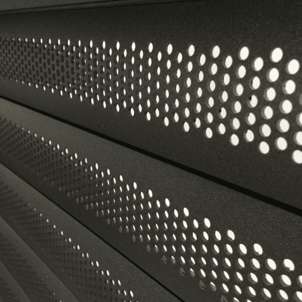 Perforated sections within the profile afford 22% vision and allow air to flow through the shutter. The P77 profile can be combined with the E77 or V77 profiles, for lower or higher levels of transparency.